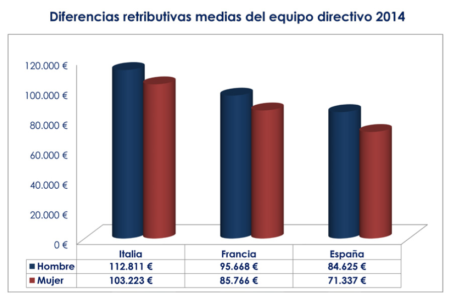 Al igual que en las ediciones anteriores, el informe salarial analiza las diferencias retributivas con los países vecinos Francia e Italia. La comparación no deja de ser francamente negativa para nuestro país en cuanto a la retribución se refiere. En números absolutos, a las directivas españolas se les paga peor y la diferencia con sus compañeros varones es mayor. En cuanto a la presencia femenina en la dirección la comparación muestra que dichos países también experimentan un declive desde el inicio de la crisis, las mujeres directivas ha pasado del 13,9 al 11,7% en Francia y del 8,8 al 7,1 en Italia.