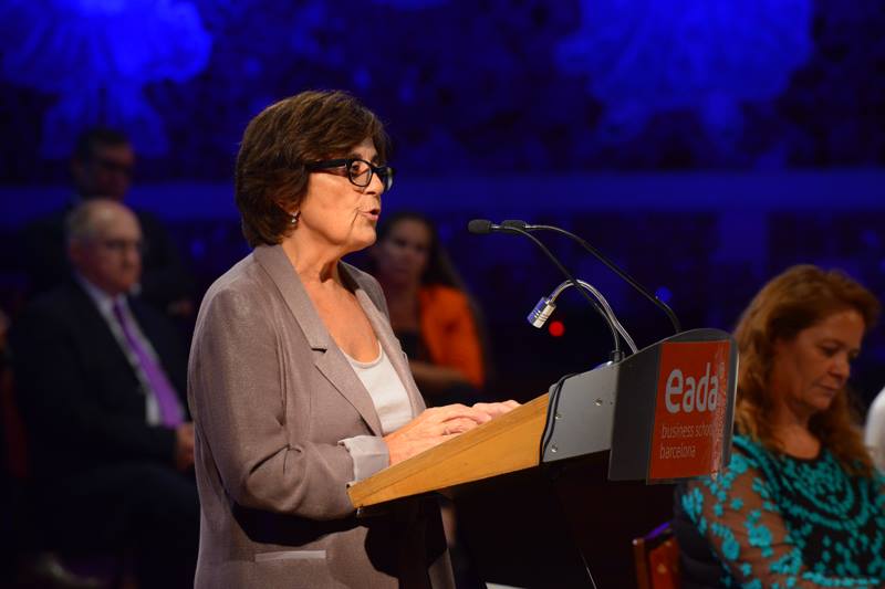Acto seguido, Susana Bleier, secretaria del Patronato de la Fundación EADA, hizo un repaso de los hechos más importantes del último curso académico. Entre estos cabe destacar los más de 120.000 participantes procedentes de más de 50 países que han pasado por las aulas de EADA, la excelencia de los programas –certificada por las acreditaciones EQUIS y AMBA, por el reciente nombramiento de la escuela de negocios como partner oficial del CFA Institute y por el ranking del Financial Times que la posiciona entre las mejores 50 escuelas del mundo en Executive Education y la 25 de Europa–, los acuerdos con instituciones internacionales –como con la HLL de Leipzig, Centrum de Perú, Politécnico de Milán y la Tongji University en China–, el lanzamiento junto a PriceWaterhouseCoopers del Executive Development Programme –una formación adaptada a las necesidades de ejecutivos de compañías energéticas en cuya primera edición participaron 52 directivos de Kazakhstan– y, también, el compromiso con los principios de RSC –como lo constata la suscripción de los principios del Global Compact de Naciones Unidas–.