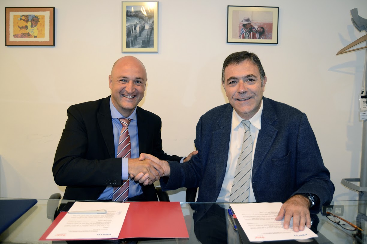 En la foto, el director general de FESTO, Xavier Segura (izquierda) con el director general de EADA, Miquel Espinosa (derecha), en el momento de la firma del convenio.
